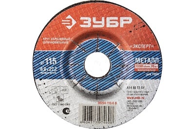 Круг шлифовальный абразивный ЗУБР по металлу, для УШМ, 115х6х22,2мм 36204-115-6.0