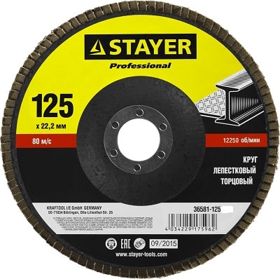 Круг шлифовальный STAYER "PROFI" лепестковый торцевой, зерно-электрокорунд нормальный, тип КЛТ 1, P6 / STAYER 36581-125-060