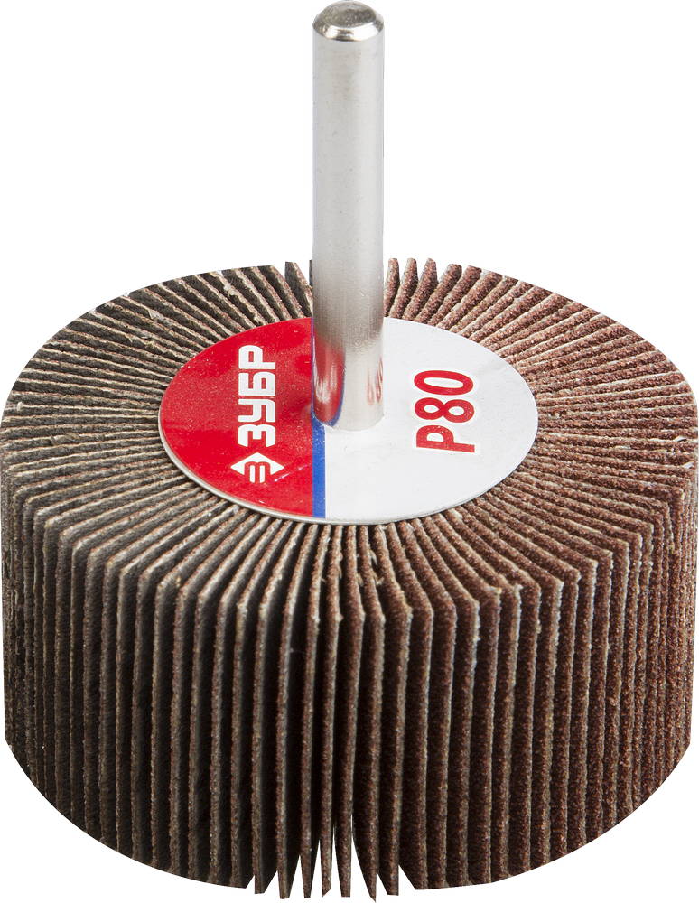 Круг шлифовальный ЗУБР "МАСТЕР" веерный лепестковый, на шпильке, тип КЛО, зерно-электрокорунд нормальный, P80, 30х60мм