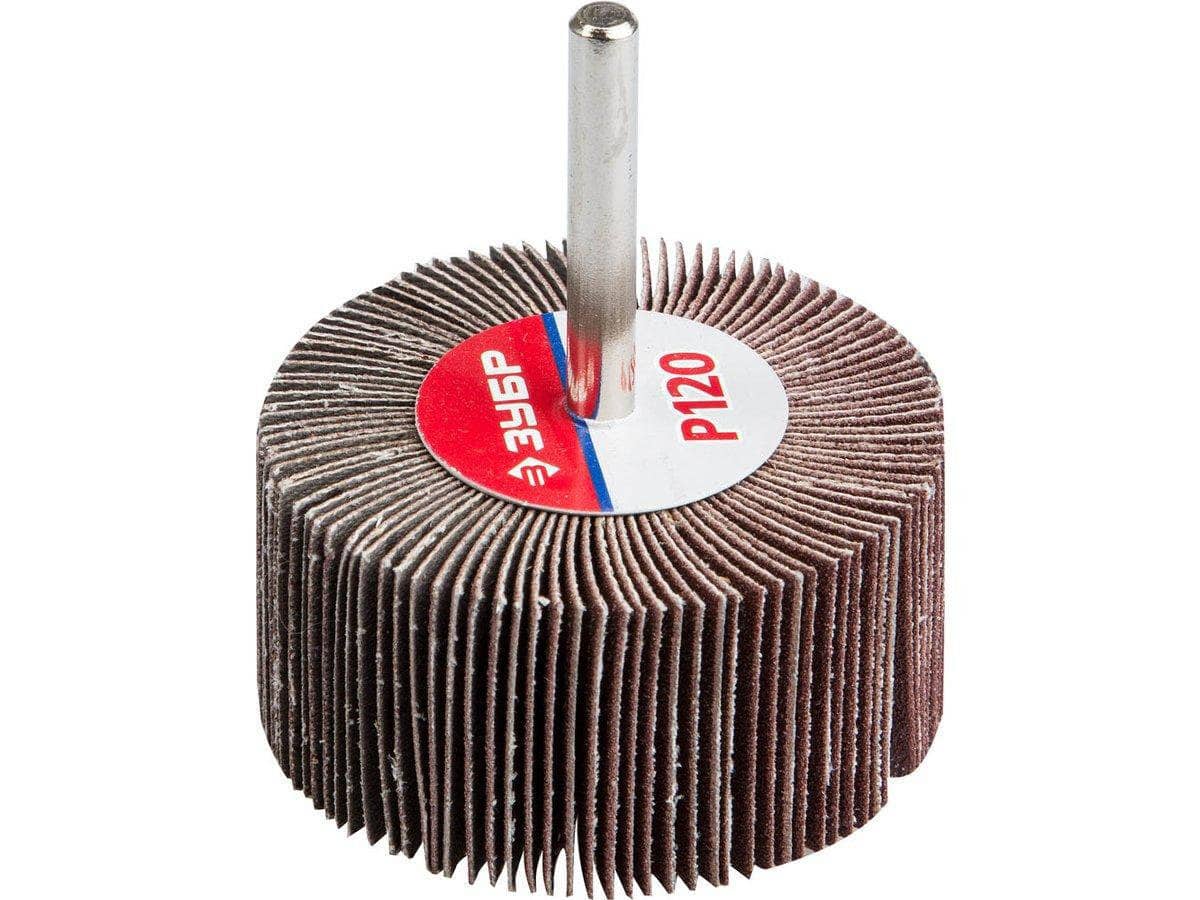 Круг шлифовальный ЗУБР "МАСТЕР" веерный лепестковый, на шпильке, тип КЛО, зерно-электрокорунд нормальный, P120, 30х60мм
