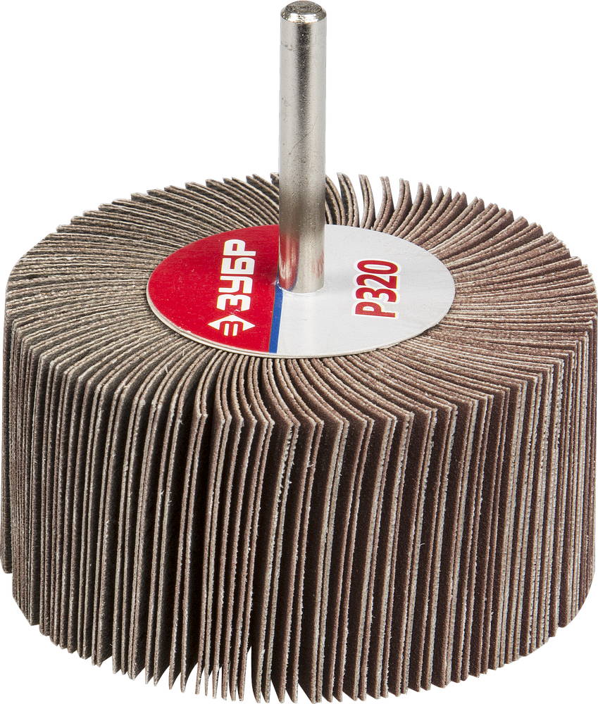 Круг шлифовальный ЗУБР "МАСТЕР" веерный лепестковый, на шпильке, тип КЛО, зерно-электрокорунд нормальный, P320, 40х80мм