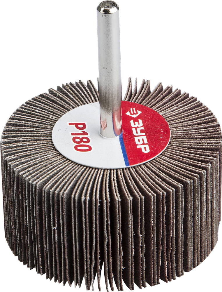Круг шлифовальный ЗУБР "МАСТЕР" веерный лепестковый, на шпильке, тип КЛО, зерно-электрокорунд нормальный, P180, 30х60мм