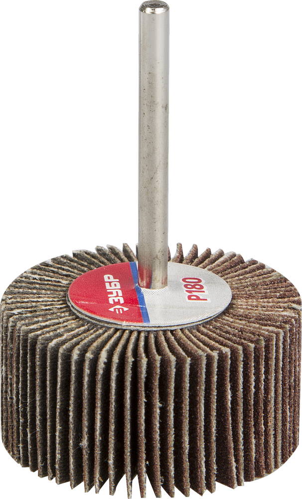Круг шлифовальный ЗУБР "МАСТЕР" веерный лепестковый, на шпильке, тип КЛО, зерно-электрокорунд нормальный, P180, 15х30мм