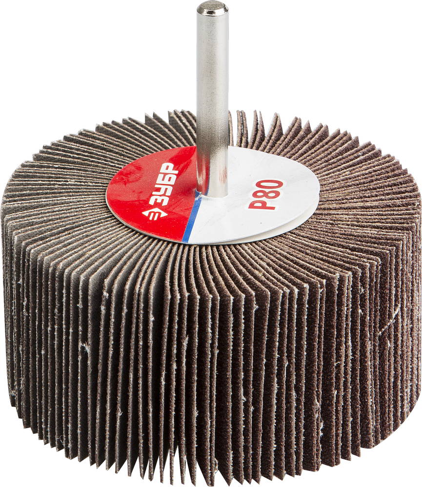 Круг шлифовальный ЗУБР "МАСТЕР" веерный лепестковый, на шпильке, тип КЛО, зерно-электрокорунд нормальный, P80, 40х80мм