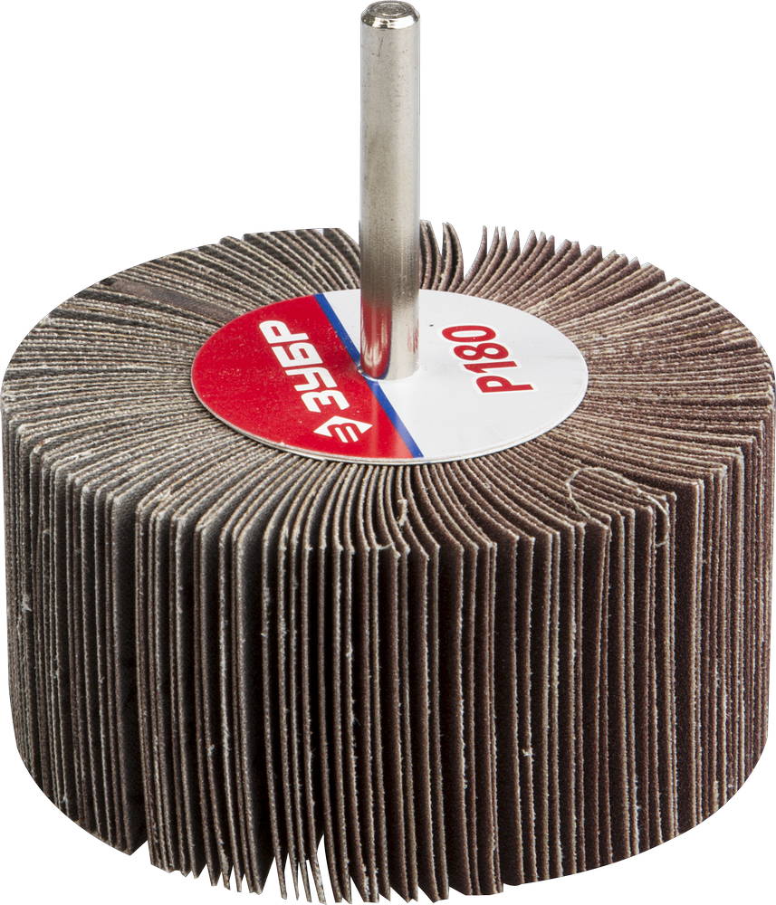 Круг шлифовальный ЗУБР "МАСТЕР" веерный лепестковый, на шпильке, тип КЛО, зерно-электрокорунд нормальный, P180, 40х80мм