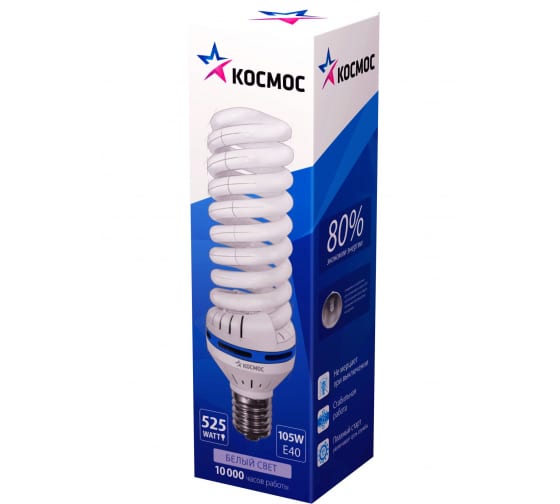 Лампа энергосберегающая КЛЛ 105/842 E40 D83х270 спираль мини Космос