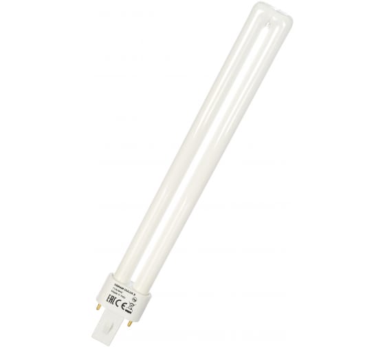 Компактная люминесцентная лампа неинтегрированная OSRAM DULUX S 11Вт с штырьковым одиночным цоколем G23 и однооборотной колбой. Лицензиатом торговой марки OSRAM в общем освещении является компания LEDVANCE