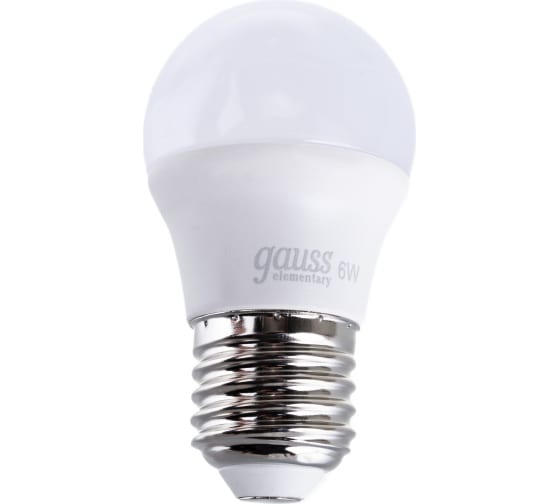 Лампа светодиодная LED 6 Вт 450 Лм 4100К белая Е27 Шар Elementary Gauss 53226