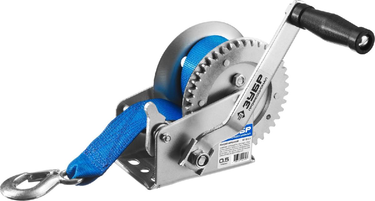 Лебедка ручная барабанная ЗУБР "ПРОФЕССИОНАЛ", тяговая, ленточная, 0,5т, 8м 43115-0.5