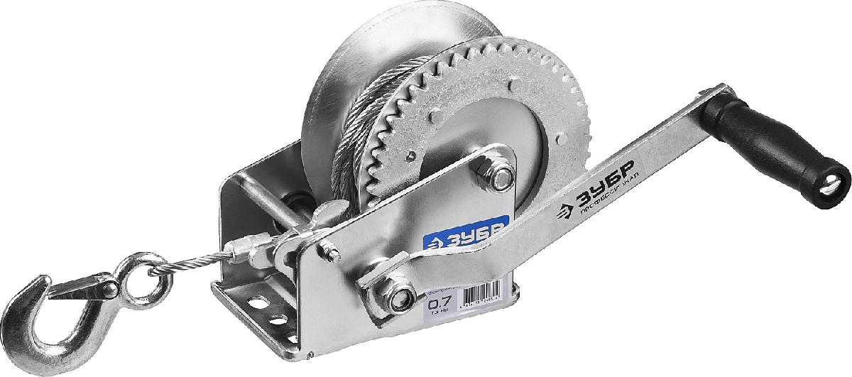 Лебедка ручная барабанная ЗУБР "ПРОФЕССИОНАЛ", тяговая, тросовая, 0,7т, 8м 43113-0.7