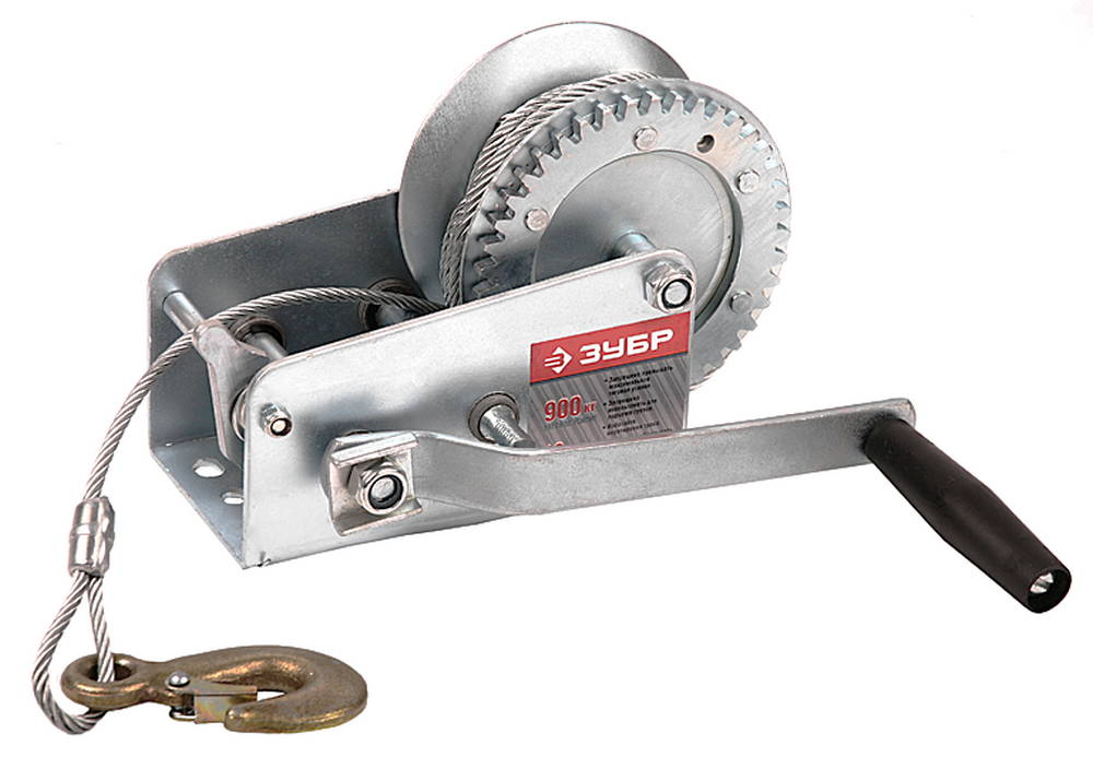 Лебедка ручная барабанная ЗУБР "ПРОФЕССИОНАЛ", тяговая, тросовая, 0.9 т, 10 м 43113-0.9