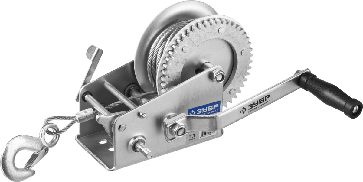 Лебедка ручная барабанная ЗУБР "ПРОФЕССИОНАЛ", тяговая, тросовая, 1,1т, 8м 43113-1.1