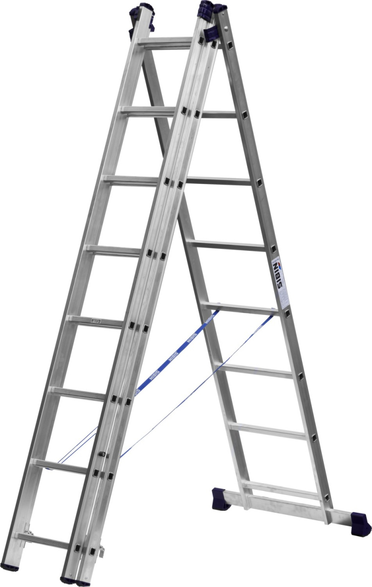 Лестница универсальная, трехсекционная со стабилизатором, 8 ступеней