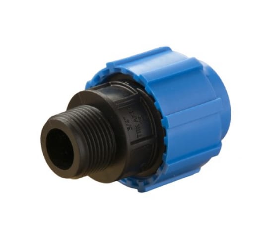Муфта компрессионная с наружной трубной резьбой предназначена соединения стального трубопровода с трубопроводом ПНД труб, так как имеет резьбу соответствующую размерам и стандартам резьбы стальных трубных. Такая муфта так же может использоваться в строительстве различных комбинаций отводов и разветвлений с применением других компрессионных ПНД фитингов. Широкая линейка диаметров - 20, 25, 32, 40, 50, 63, 75, 90 и 110 мм. Материал муфты - полиэтилен