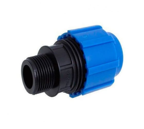 Муфта компрессионная с наружной трубной резьбой предназначена соединения стального трубопровода с трубопроводом ПНД труб, так как имеет резьбу соответствующую размерам и стандартам резьбы стальных трубных. Такая муфта так же может использоваться в строительстве различных комбинаций отводов и разветвлений с применением других компрессионных ПНД фитингов. Широкая линейка диаметров - 20, 25, 32, 40, 50, 63, 75, 90 и 110 мм. Материал муфты - полиэтилен