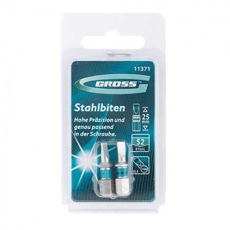Набор из двух бит упакован в жесткую термоформованную пленочную коробку (double blister) размером 95 Х 50 мм.