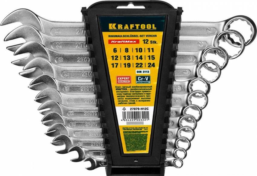 Набор KRAFTOOL "EXPERT": Ключи гаечные комбинированные, Cr-V сталь, хромированные, 6-24мм, 12шт