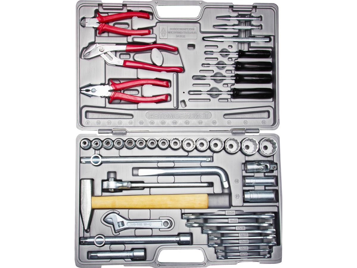 Набор слесарно-монтажного инструмента НИЗ "АВТОМОБИЛИСТ-1", сталь 40Х, 1/2", в пластиковом кейсе, 42 предмета