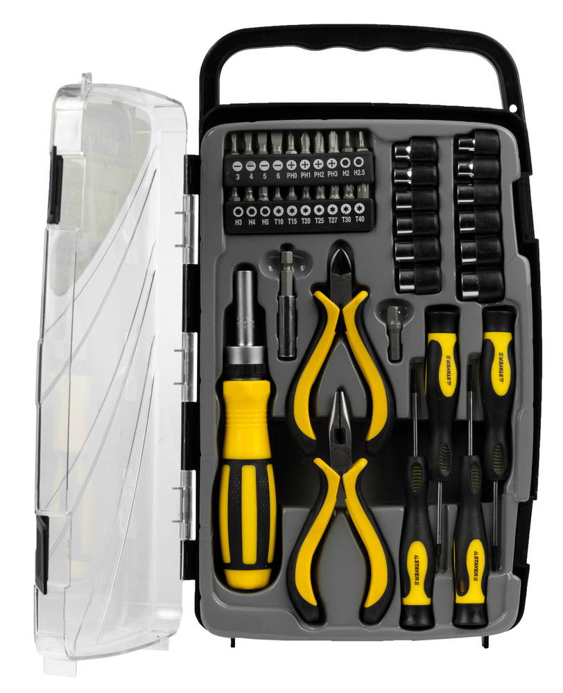 Набор STAYER "MASTER": Отвертка реверсивная с эргономичной ручкой, с насадками, в пластмассовом боксе, 41 предмет