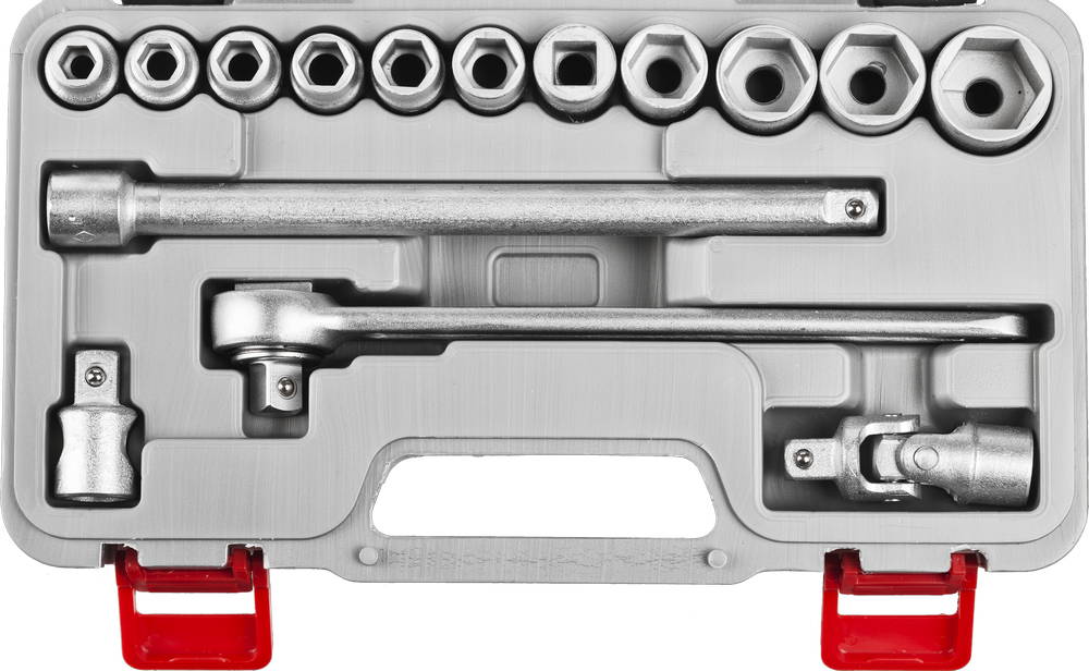 Набор торцовых головок НИЗ "Шоферский инструмент №2Д", сталь 40Х, 1/2", в пластиковом кейсе, 15 предметов