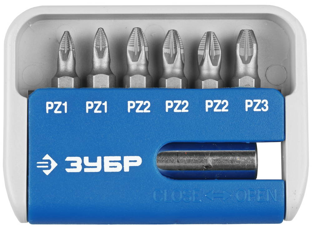 Набор ЗУБР: Биты с магнитным адаптером, хромомолибденовая сталь S2, PZ1(2шт), PZ2(3шт), PZ3(1шт), 7 пред
