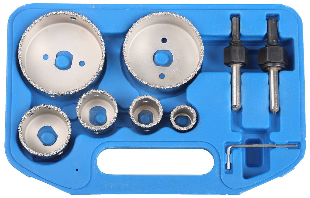 Набор ЗУБР "ЭКСПЕРТ" Коронки-чашки с карбид-вольфрамовой крошкой, в сборе, высота 25мм, 22, 28, 35, 44, 68, 73мм, 6пред.