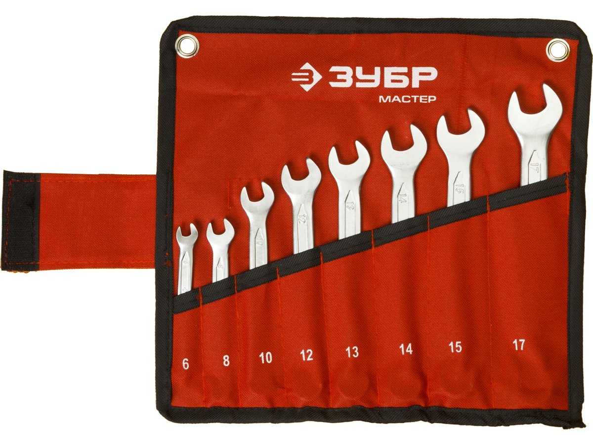 Набор ЗУБР "МАСТЕР": Ключ гаечный комбинированный, Cr-V сталь, хромированный, 6-17мм, 8шт