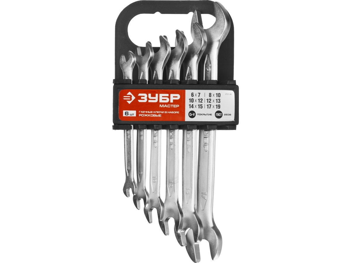 Набор ЗУБР "МАСТЕР": Ключ гаечный рожковый, Cr-V сталь, хромированный, 6-19мм, 6шт