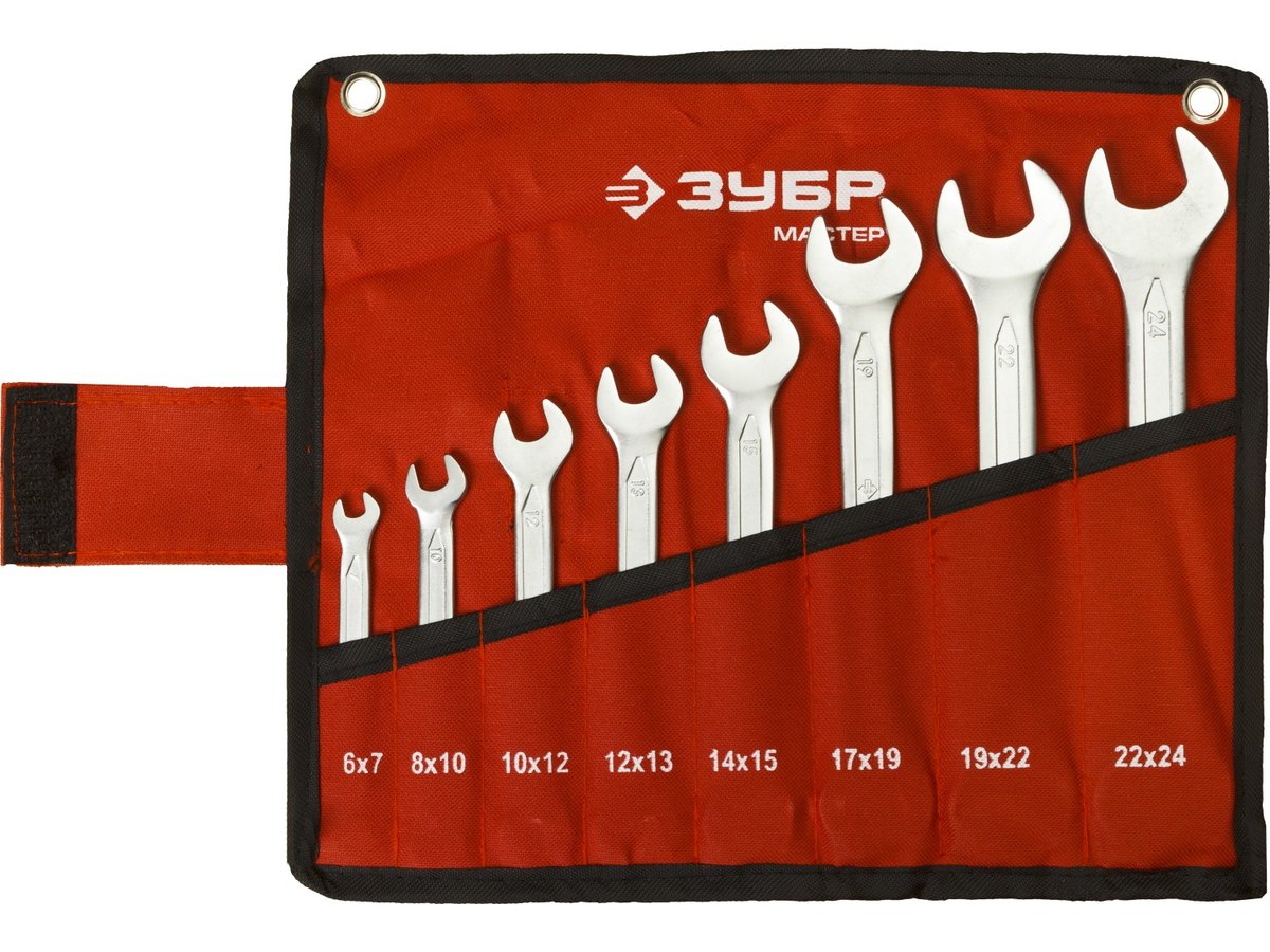 Набор ЗУБР "МАСТЕР": Ключ гаечный рожковый, Cr-V сталь, хромированный, 6-24мм, 8шт 27010-H8