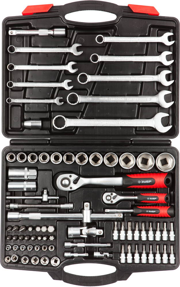 Набор ЗУБР "МАСТЕР": Торцовые головки FLANK (1/2", 1/4"), биты-головки, гаечн ключи, доп принадл, Cr 27635-H82