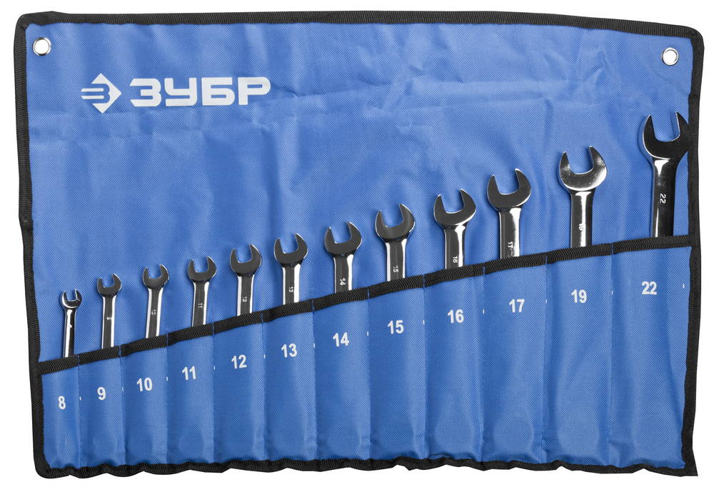 Набор ЗУБР "ПРОФИ": Ключ гаечный комбинированный трещоточный, Cr-V сталь, хромированный, 8-22мм, 12шт