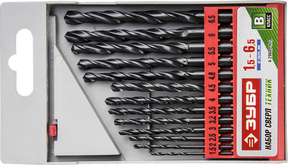 Набор ЗУБР "ТЕХНИК": Свёрла по металлу парооксидированных, быстрорежущая сталь, 1,5-6,5мм, 13шт 29605-H13