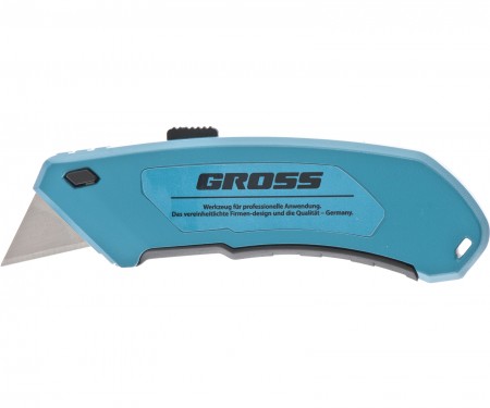 Нож, 130 мм, алюминиевый корпус, выдвижное трапециевидное лезвие 18 мм (SK-5), клипса для ремня, 4 лезвия Gross