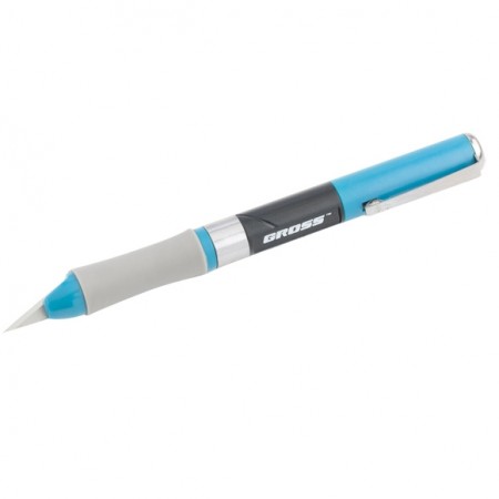 Нож для дизайна, выдвижное перовое лезвие, двухкомпонентная рукоятка, металлическая клипса для фиксации, 150 мм, 2 запасных лезвия Gross