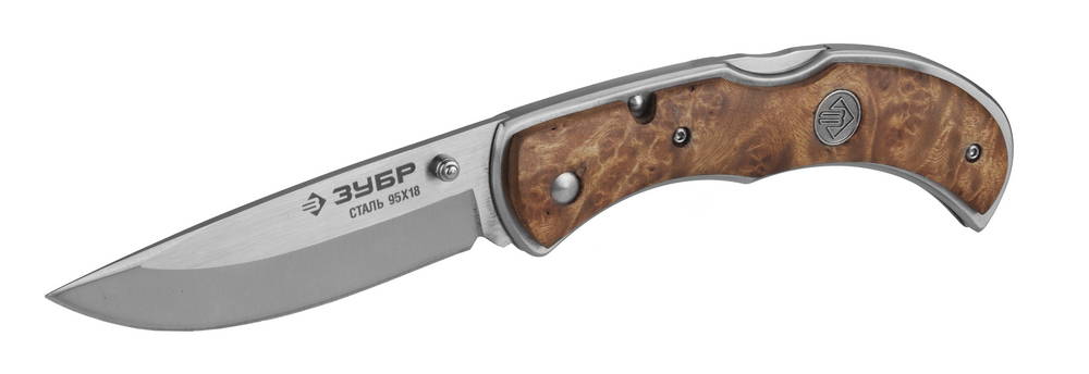 Нож ЗУБР "ПРЕМИУМ" НОРМАНН складной, эргономичная рукоятка с деревянными накладками, 220мм/лезвие 95мм