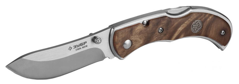 Нож ЗУБР "ПРЕМИУМ" СКИФ складной, эргономичная рукоятка с деревянными накладками,180мм/лезвие 75мм