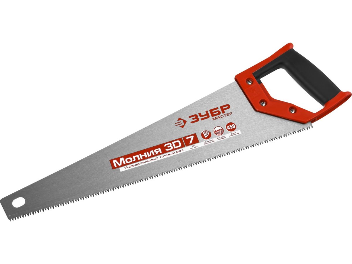 Ножовка универсальная (пила) ЗУБР МОЛНИЯ-3D 450 мм, 7TPI, 3D зуб, точный рез вдоль и поперек волокон 15077-45