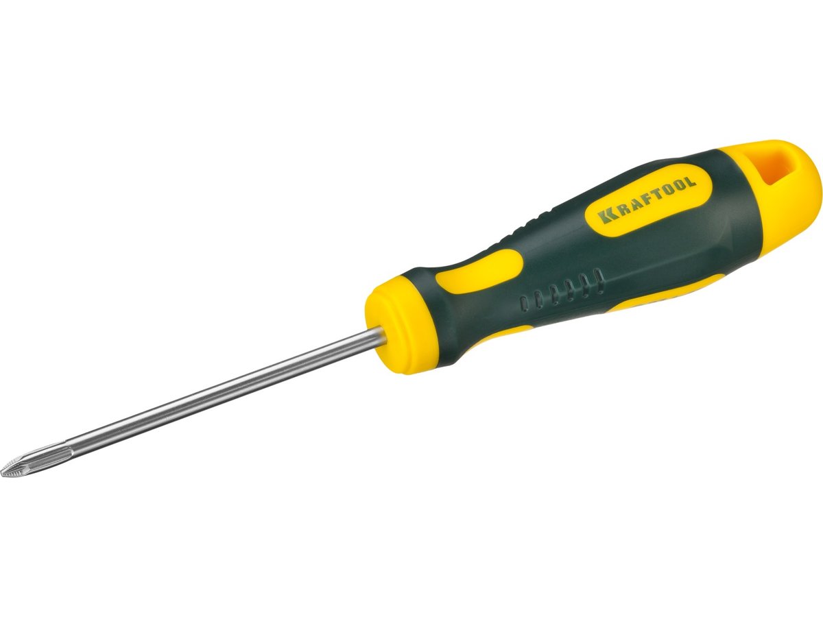 Отвертка KRAFTOOL "EXPERT", Cr-Mo-V сталь, двухкомпонентная противоскользящая рукоятка, PZ, №1x80мм