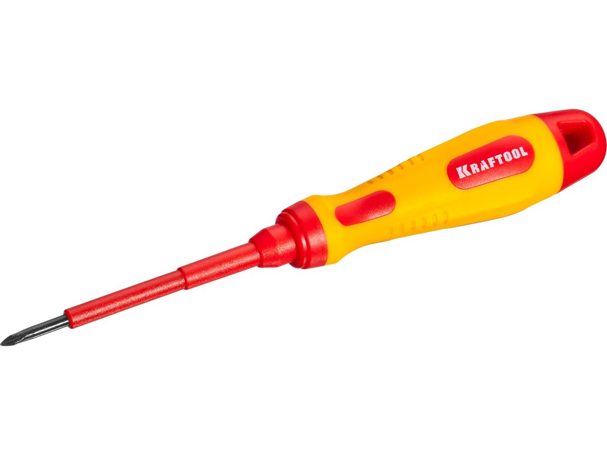 Отвертка KRAFTOOL "EXPERT", высоковольтная, Cr-Mo-V стержень, двухкомпонент. маслобензостойкая рукоятка, PH №0, 60мм