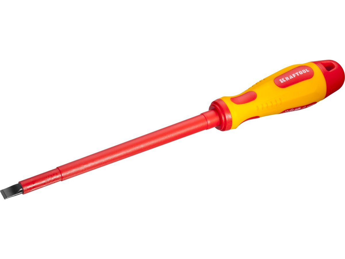 Отвертка KRAFTOOL "EXPERT", высоковольтная, Cr-Mo-V стержень, двухкомпонент. маслобензостойкая рукоятка, SL, 8,0х175мм