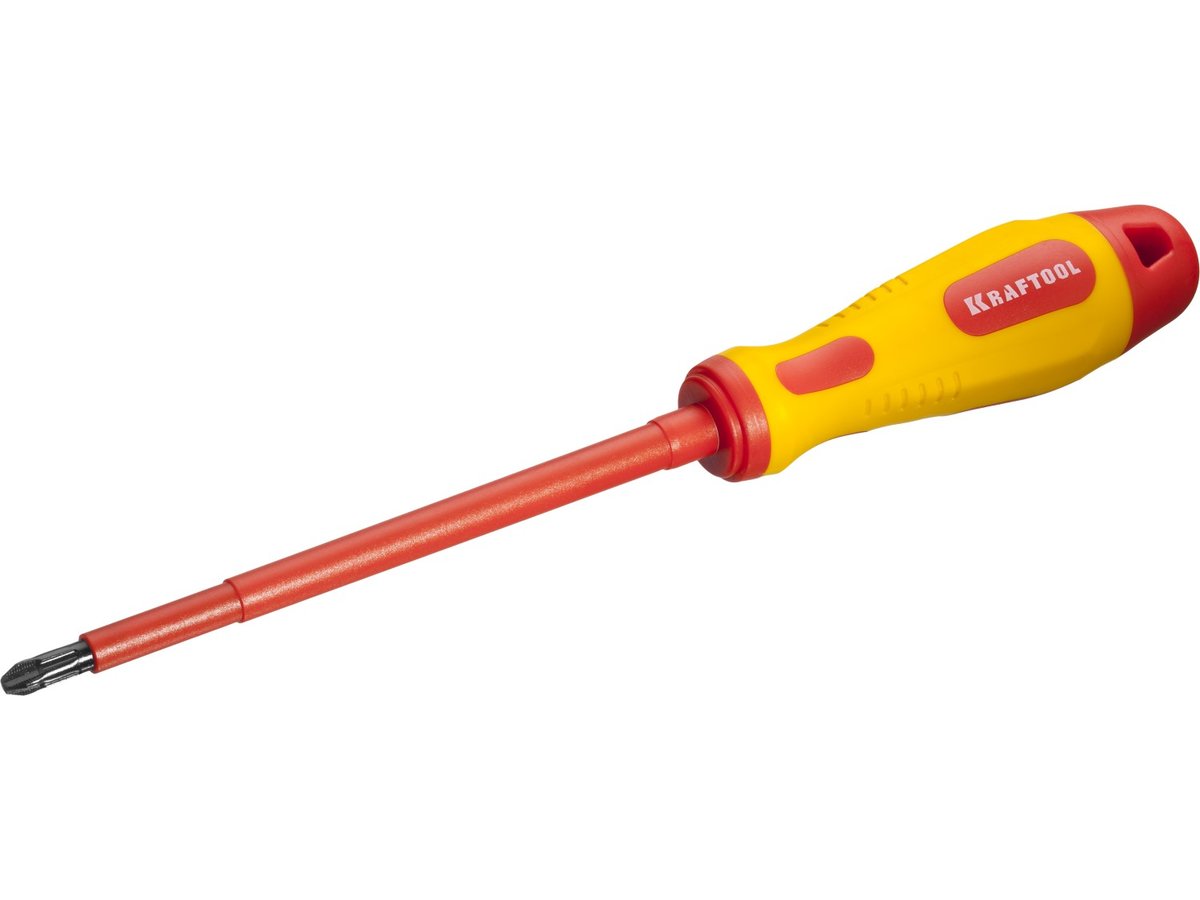 Отвертка KRAFTOOL "EXPERT", высоковольтная, Cr-Mo-V стержень, двухкомпонент. маслобензостойкая рукоятка, PH №3, 150мм