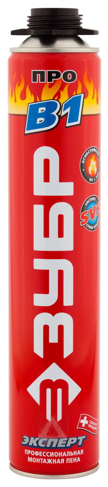 Пена монтажная ЗУБР "ЭКСПЕРТ" ПРО B1огнестойкая, проф., пистолетная, всесезонная, 750мл