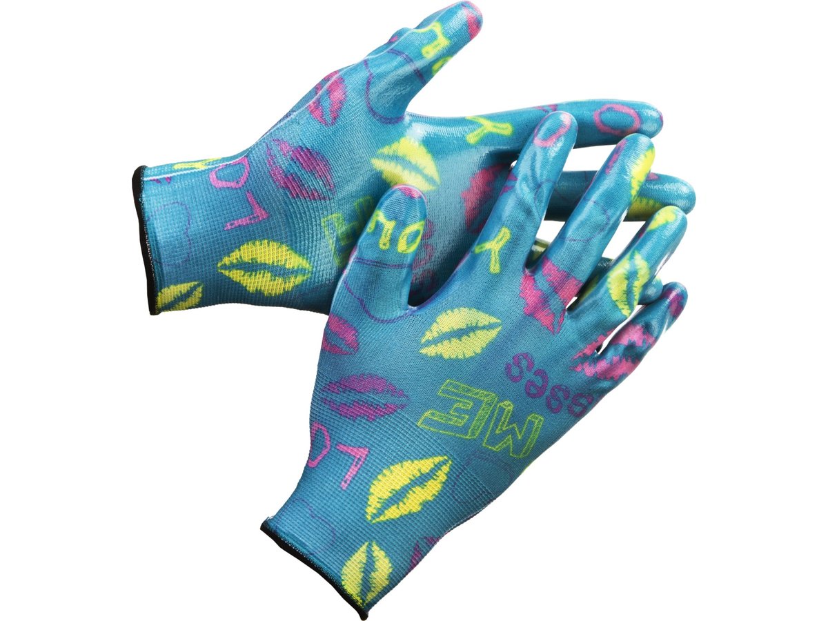 Перчатки GRINDA садовые, прозрачное нитриловое покрытие, размер S-M, синие 11296-S