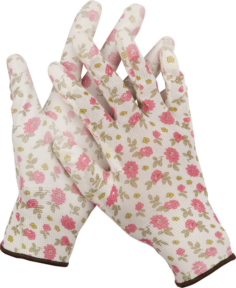 Перчатки GRINDA садовые, прозрачное PU покрытие, 13 класс вязки, бело-розовые, размер L 11291-L