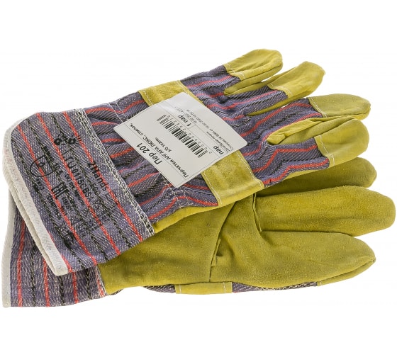 Перчатки выполнены из говьяжего спилка и смесовой ткани (30% хлопок, 70% полиэфир). Предусмотрена подкладка на ладонях и пальцах из 100% хлопка. Манжеты представляют собой мягкую крагу.