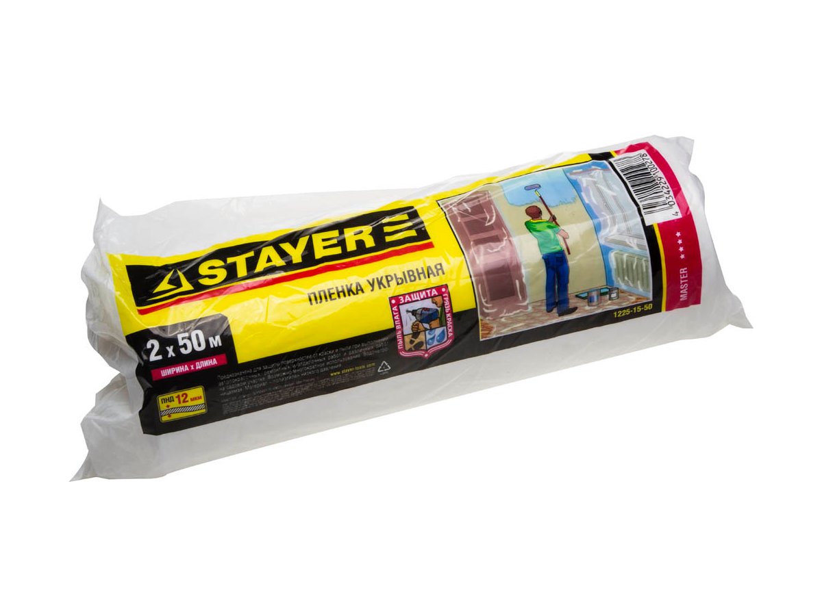 Пленка STAYER "MASTER" защитная укрывочная, HDPE, в рулоне, 12 мкм, 2 х 50 м 1225-15-50
