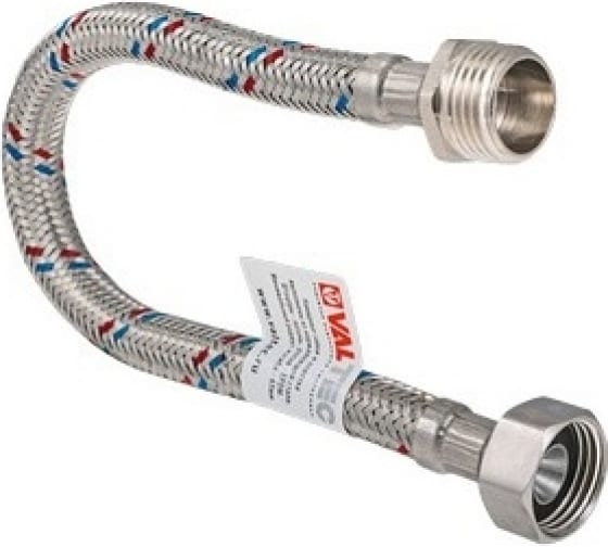Гибкие подводки VALTEC предназначены для присоединения к трубопроводам приборов водоснабжения, отопительного, сантехнического оборудования, бытовой техники, использующей воду. Подводки гибкие для воды VTf.002.IS рассчитаны на эксплуатацию при рабочем давлении 10 бар (максимальное давление - 20 бар) и температуре от 1 до 95 градусов (максимальная температура - 100 градусов). Внутренний диаметр шланга - 8.5 ± 0.5 мм. Закладной ниппель, накидная гайка, пресс-гильзы и оплетка подводок изготовлены из нержавеющей стали AISI 301. Использование ниппеля из нержавеющей стали позволило исключить излом этого элемента, повысить надежность всего изделия. Подключение гибкой подводки VTf.002 - гайка–штуцер, диаметр присоединения - 1/2`