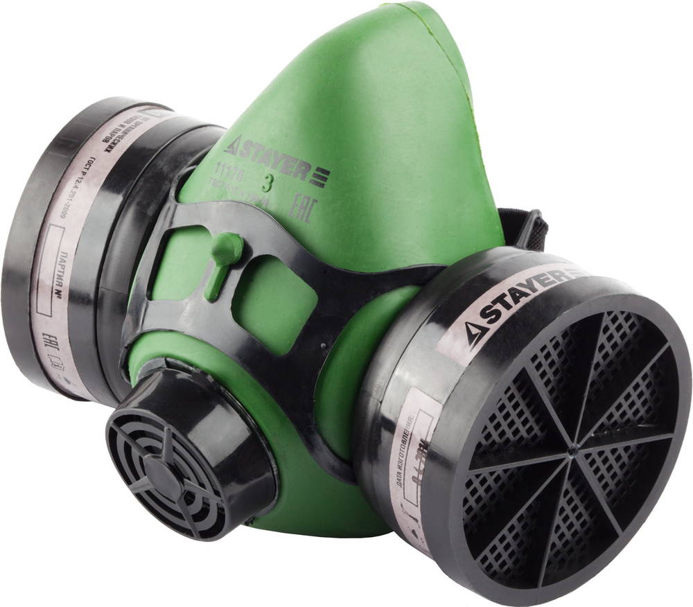 Полумаска STAYER "MASTER" фильтрующая противогазная, в комплекте с фильтрами А1 11175