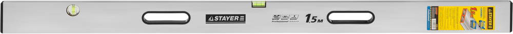 Правило-уровень STAYER "PROFI" алюминиевый, 2 глазка, 2 ручки, усилен прямоуг профиль, с ребром жесткости, 1,5м