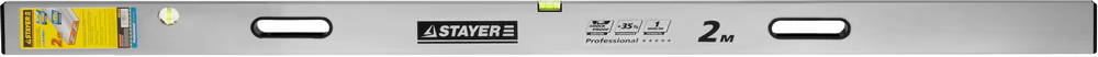 Правило-уровень STAYER "PROFI" алюминиевый, 2 глазка, 2 ручки, усилен прямоуг профиль, с ребром жесткости, 2,0м